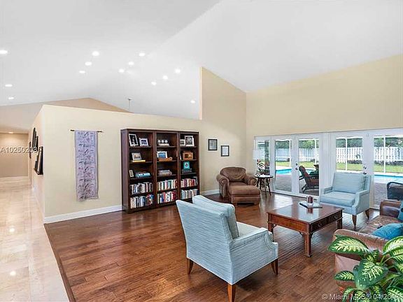 Magnificent Home in Killian Place! Enter this beauty with 5 bedrooms 3.5 baths on beautifully landscaped .5 acre lot on a cul-de-sac street. Light, bright and open with vaulted ceilings and split floor plan. Grand master suite, office, formal dining room, separate formal L.R. Combined Family Room with Gorgeous Kitchen that opens up to a screened in pool/patio area. Great for large family gatherings & entertaining. Impact windows and doors, marble and wood floors, 3 car side entry garage. The list goes on!