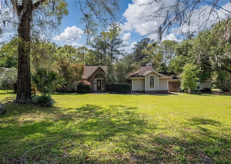 This home is so Special! Nestled in a quiet neighborhood directly to the west from 91st street in SW Gainesville...all of the convenience, without the crowds! The 1.58 Acre retreat features 5 bedrooms and 3 bathrooms, living room, family room, PLUS sunroom, AND an office/studio, a huge 3 car-garage PLUS the sweetest guest house...your guests won't want to leave! Enter the home, straight ahead is your living room and sunroom. To your right is the upgraded kitchen and the adjacent family room. Be your own barista at the built-in coffee bar and enjoy it in the sunny, enclosed lanai overlooking the POOL and gardens! The breakfast bar serves both the kitchen and the family room; its location is perfect both for the flow of families and for entertaining crowds. The spacious family room features a stacked-stone fireplace for those cozy chilly evenings and creates a gorgeous focal point for the room. There are vaulted ceilings throughout the living areas...spacious and airy in every direction! And the bedrooms...the three-way split is ideal for harmonious living. Three bedrooms in one area, one extra-spacious room with adjacent bath in another. The bedroom of the owner retreat opens through french doors to the home office, library, studio, or whatever use you desire of this space! The free-standing guest house uses a separate entrance from the main home and features its own little deck from which to enjoy the property and the gardens. Host your family, friends, or even "paying" visitors...there is NO HOA! There is unbelievable storage and closet space throughout the interior of the home with additional, exterior storage for your pool implements and pool or "outdoor" toys. In addition to this storage area and the 3-car garage, there is a gardening shed at the rear of the property, perfect for housing gardening or other "toys". Solar panels installed June 2020 Dramatically impact the home's monthly utility bill. The massive, 3-car garage offers plenty of room for two cars and a workout space, shop, or golf cart! An additional concrete parking pad or "sport court" is located beyond the garage and is even outfitted with RV-capable electrical service. The backyard is fenced, with a large gate to permit lawn care or firewood delivery for the fire-pit! There is a whole-house 15000-watt generator in for storm preparedness powered by a 500-gallon propane tank that also serves the fireplace. UTUBE Tour: copy/paste: https://youtu.be/tfPozC-7Zh8 This home is a must-see, make your appointment today! Tankless water heater replaced in 2020, HVAC 2018, pool pump 2020, HVAC 2018, Roof 2011, Guest house built in 2018. *All Measurements should be verified by purchaser.