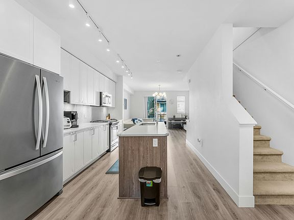 Nestled in the Canopy community at Tynehead Park, this 4-bed/3.5-bath home combines urban convenience with a natural setting. The open main floor features a kitchen with quartz counters, gas range, and stainless appliances, flowing into bright living/dining areas and a spacious deck. Upstairs, find three bedrooms including a primary suite with walk-in closet and ensuite, while the ground level offers an additional bedroom and bath. The attached double garage provides secure parking for 2 cars. Enjoy clubhouse amenities (gym, yoga, billiards, party rooms) and direct access to Tynehead Park trails—all just minutes from Fraser Hwy, transit, shopping, schools, and recreation. Open House this Saturday Oct 4th, 2-4PM.