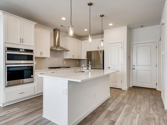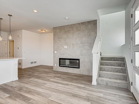 Brand new END UNIT townhome with spectacular mountain views located in Prospect Village at Sterling Ranch to be completed in December 2023! Early Colorado two-story floor plan features covered front porch, open living room with 9’ ceilings on main AND upper level, and luxury kitchen with 42” charcoal gray cabinets, quartz countertops, tile backsplash, and stainless Whirlpool® appliances with 36" gas cooktop, chimney hood, and microwave/oven combination. Owner's bedroom suite features 5 pc. bath, walk-in shower with bench, and oversized walk-in closet! Enjoy amazing community amenities and 30-miles of trails right outside your front door! * SAMPLE PHOTOS ARE NOT OF ACTUAL HOME.