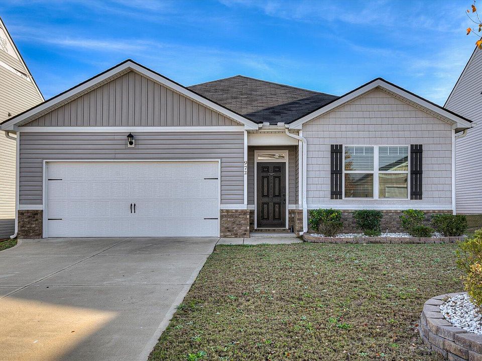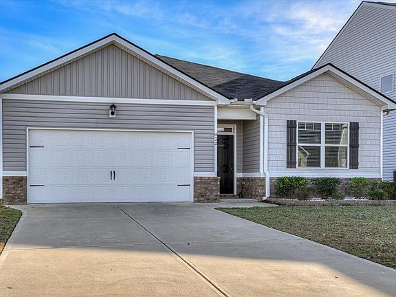 LIKE NEW Ranch Home near Fort Eisenhower in Sims Landing. This open floor plan house is in pristine condition and has been freshened up with brand new carpet in bedrooms and new paint throughout. Kitchen features granite countertops and island, subway tile backsplash, pantry, stainless-steel appliances, and opens right up to the dining area and living room complete with a fireplace, making it ideal for family and entertaining. Owner's suite features trey ceilings, dual vanities, step-in shower with separate garden tub and a walk-in closet. Tons of storage space throughout and guest bedrooms offer lots of space as well. Covered patio and privacy fence out back. Conveniently located near Interstate, Fort Eisenhower, shopping, restaurants, schools and more! Schedule your showing today!