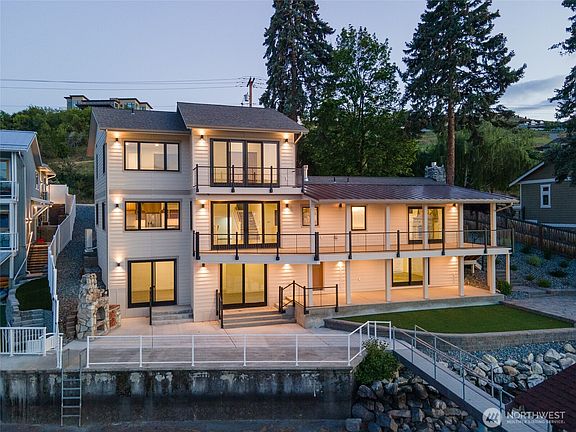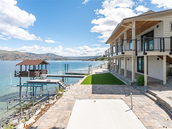 Stunning & newly rebuilt Waterfront home on Lake Chelan’s prestigious Golden Mile! Over 5,100sq' of luxury living w/ high-end finishes throughout—quartz counters, tile floors, gorgeous window/door package, high quality cabinetry, shiplap walls, walk-in pantry, & restored original stone fireplace. Featuring 5 beds, 6 baths, bonus room w/ wet bar, spacious open concept kitchen & great room, & thoughtfully designed layout! Enjoy extensive outdoor living, paver walkways, covered decks & patios, hot tub pad, gorgeous landscape & mature pines. New dock, boat lift, 2 buoys, & structurally refinished rare & historic "cabana" over the water. Prime location just 4 miles from downtown, close to Bear Mt Golf, & walking distance to numerous wineries!