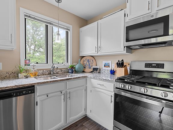 Welcome to your dream home in one of Naperville's most desirable condo communities! Nestled on a peaceful cul-de-sac within the award-winning Naperville 203 school district, this stunning second-floor unit offers the perfect blend of comfort, style, and convenience. Step inside to an open, sun-drenched floor plan featuring soaring cathedral ceilings, skylights, and a warm, inviting fireplace-ideal for both entertaining and everyday living. The beautifully updated eat-in kitchen is a chef's delight, complete with sleek granite countertops and stainless steel appliances. You'll love the spacious layout, offering two generously sized bedrooms and two full bathrooms with elegant granite finishes. Enjoy the added convenience of an in-unit laundry room with full-size washer and dryer, private balcony for your morning coffee, and attached garage parking. Move-in ready with major updates already done for you-new stainless steel appliances, air conditioner, and water heater. All of this just minutes from the Metra train, I-88, Naperville's vibrant downtown, Riverwalk, shopping, dining, and more. This unit is investor friendly. Don't miss this opportunity-this home has it all: natural light, generous space, modern updates, and an unbeatable location. All that's missing is you!