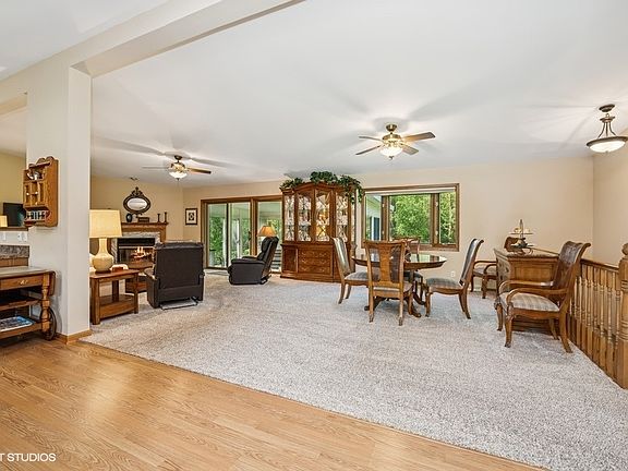 BUYER changed their mind when their particular boats couldn't be accomodated. Fabulous floor plan in Dunn's Lake Estates with boat dock. This open concept ranch home sits across the street from the lake and includes a pier at the community dock on Dunn's that leads to Nippersink Lake. Come and explore this great home in this hidden gem of a subdivision! Built for entertainment and relaxation, you will enjoy the kitchen with island and table space that opens to the living room that continues on to the 3 season room. The primary en-suite is on one end and tow nicely sized bedrooms on the other. In the partial finished basement you will find loads of storage, a family room area and exterior, walk-up access. 3 car garage has 8 ft high doors.