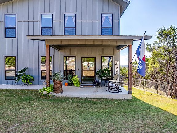 This Spectacular Home with the Most Amazing Views is like living in the Treetops of the Hill Country! This Property features a like new 2024 built Custom Home with 3 bedrooms, 2.5 baths and 2 living areas. The Upstairs Living Area shows off with 180 degree Views for Miles of Treetops, Rolling Hills & the Brazos River. Relax on your choice of 2 Back Porches, both spanning the length of the back of the home, one upstairs and one down. Walking inside this Beauty will also WOW. Modern Design Finishes include an Iron & Glass Front Door, Custom Shaker Cabinets, Oversized Kitchen Island, Stainless Appliances, Mudroom, Custom Wood Accents and a TON of Natural Light. There is so much to LOVE about this Property! Perfect for Entertaining, a Weekend Getaway or Vacation Property.