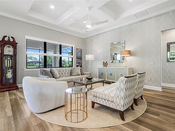 A Must See! Great alternative to condo living with low fees! Designed with versatility in mind, this residence offers 2/3 bedrooms plus a bright and sunny Florida room. Easily convert the extra room to a third bedroom, a den or a home office. Discover luxury and refined living in the prestigious, amenity-rich community of Greyhawk at Golf Club of the Everglades. This beautifully enhanced Abbeyville model offers timeless elegance, custom upgrades, and the ultimate Florida lifestyle. From the moment you arrive, lush bougainvillea and professional landscaping set the stage for a home that feels both warm and sophisticated. Step through the screened entry into a light-filled foyer where charm and craftsmanship create an inviting, cottage-inspired ambiance. Every detail reflects luxury, from designer-painted interiors with accent wallpaper to coffered ceilings, crown molding, chandeliers, and custom window treatments. The heart of the home is a chef’s kitchen with gas appliances, pantry, and a generous island, seamlessly opening to the dining and gathering areas. A bonus Florida room provides additional space for a home office, reading nook, or art studio, leading out to the showpiece of the home—the resort-style screened lanai. Here, enjoy an 11x26’ saltwater pool with autofill, overlooking a tranquil lake and unforgettable sunset views. Perfect for entertaining or unwinding, this private retreat also features motorized storm shutters, hurricane-impact windows, and a whole-home generator with 10-year warranty for peace of mind. Additional highlights include: Custom organized closets and ample storage throughout, a large laundry room with cabinetry and an extended 2-car garage with epoxy flooring, utility sink, and 150 sq. ft. of floored attic space. Residents of Greyhawk enjoy a vibrant lifestyle with two clubhouses, year-round dining, a heated resort pool and lap pool, fitness center, spa, firepit, and Tiki bar. Sports enthusiasts will love the pickleball, bocce, and tennis courts, while golf lovers can enjoy the 18-hole championship course, driving range, and putting green. A dedicated Lifestyle Director curates social events, while a Sports Director ensures endless activity options. With low HOA fees, no CDD, and a mandatory social membership (optional golf membership), this home is ideal for full-time residents, seasonal escapes, or investment opportunities. This property is more than a home—it’s a lifestyle. Come experience the luxury and vibrancy of Greyhawk living.