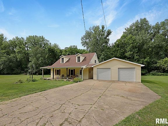 Looking for privacy just minutes from town, this is it! Well maintained three bedroom home in Illini Bluffs School District. Spacious living room opens up to the informal dining space. Updated kitchen with stainless steel appliances, pantry, and plenty of cabinets. Huge upper level primary bedroom with a walk-in closet. Great bedroom sizes and tons of closet and storage room. Oversized and heated two stall garage. Enjoy the outdoors on the covered front porch. Includes a private well for outdoor purposes - as well as city water. New roof in 2020. All this and more sitting on almost 2 acres of land. You won't want to let this one get away! Schedule your showing now!