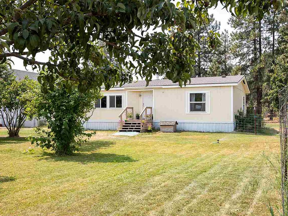 Cash or owner financing only. Incredible price for this well kept "super good sense" manufactured home on 4 plus beautiful acres w/territorial views close to Spokane & Airway Heights. Detached and large two-car garage, numerous outbuildings including a 1 bedroom guest cabin w/ kitchen, 10X12 bunkhouse/playhouse, woodshed, small livestock pen and huge storage shed. Lush sub-irrigated fenced pasture. Large garden areas, plus lots of lilac bushes. Fruit trees including cherry, apricot, apple, plum and prune.