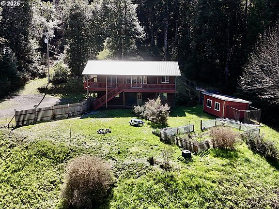 Escape to a world of peace and serenity with this charming home, perfectly situated on 3.43 acres of lush, private land. Tucked away in a picturesque setting near the scenic Rogue River, this property is a nature lover’s dream, offering the perfect blend of seclusion and convenience. Whether you’re looking for a quiet retreat, a gardener’s paradise, or a home with ample space for hobbies and outdoor recreation, this property has it all.Inside, the inviting home features two well-appointed bedrooms and two full baths, creating a cozy yet spacious living environment. The warm oak hardwood flooring flows seamlessly throughout, adding timeless charm and elegance. Designed for year-round comfort, the home is clad in durable redwood siding and topped with a sturdy metal roof, ensuring lasting quality and low maintenance.Step outside to the covered Port Orford cedar deck, where you can unwind in the fresh air while enjoying the sights and sounds of the surrounding natural beauty, rain or shine. The expansive property provides ample space for gardening, outdoor activities, or simply soaking in the tranquility of the surroundings.For those in need of extra storage or workspace, the impressive 40’ x 26’ detached shop is a standout feature. With generous space to accommodate an RV, boat, or multiple vehicles, it’s perfect for outdoor enthusiasts or hobbyists. The shop is equipped with roll-up doors for easy access, along with both electric and water hookups, making it a versatile space for a variety of uses. A cozy pellet stove adds warmth, making it a comfortable and functional workspace year-round.This exceptional property offers the ultimate in privacy, comfort, and outdoor enjoyment. Don’t miss your chance to experience this one-of-a-kind retreat—schedule your private tour today!