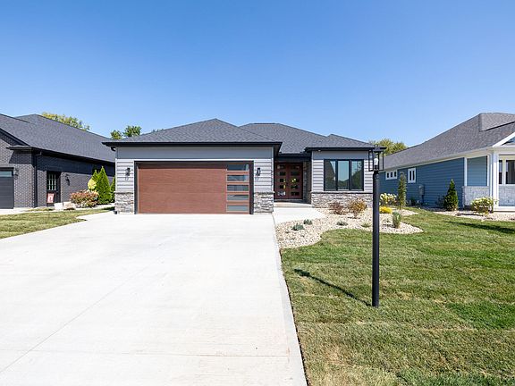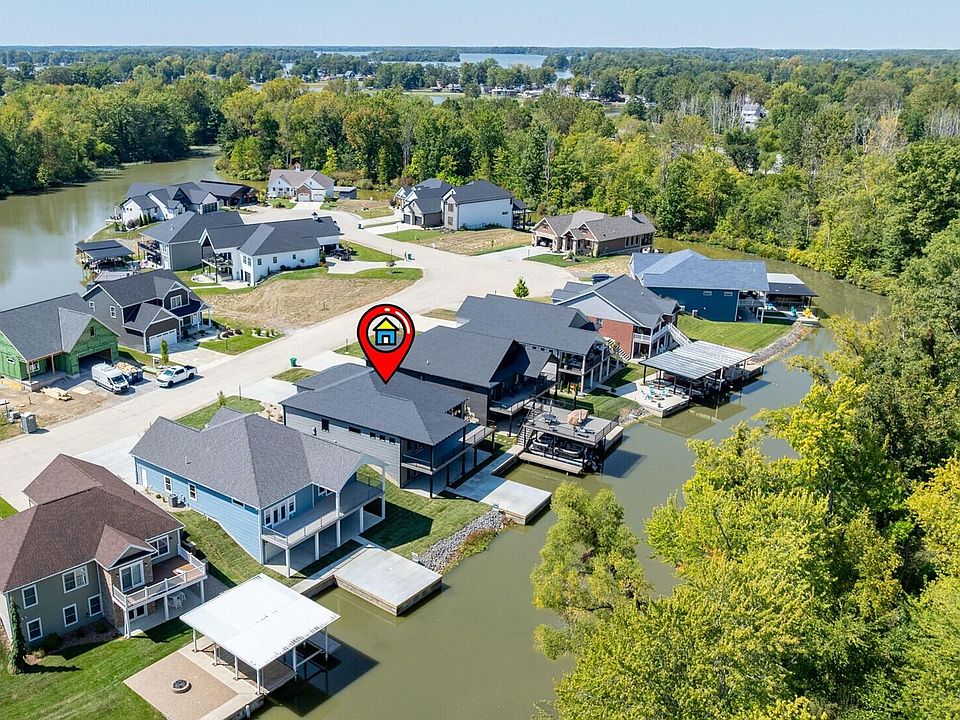 Located in the upscale, gated community of Longview Cove, this BRAND NEW waterfront home features 4 beds, 3 baths, finished walkout basement, 2-car insulated garage, 2 boat slips, & irrigation system. Total of 2992 sf of living space and luxury vinyl plank flooring throughout! Inside you'll find a beautiful kitchen with custom cabinetry, large island, quartz counters, and stainless-steel appliances. Relax in the spacious living room with decorative stone gas fireplace and vaulted ceiling. Lounge outside on the covered upper deck or lower waterside patio. The owner's suite features a private walkout to the deck, an en suite bath, and walk-in closet. In the basement you'll love the oversized living room and beautiful bar with wine fridge and ice maker. There's also a flex room, large bedroom, full bath, and an insulated waterside garage to store all your lake toys! HOA fee is $275/mo and includes lawn mowing, snow plowing of main road, irrigation maintenance, use of the private beach, boat ramp, pool, and clubhouse.