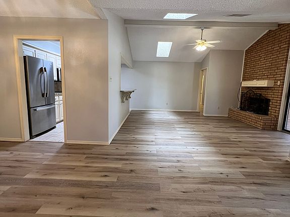 Nicely updated Townhouse with 2 large bedrooms, oversized walk-in closets and 2 private ensuite bathrooms. Brand new designer vinyl plank flooring throughout with tile in bathrooms, kitchen and utility areas. Newer stainless steel appliance package with a French 3 door refrigerator. Granite countertop in kitchen and bar area overlooking large, open living area. Remote controlled Hunter Douglas shade opening to a private patio with a newer 7" board on board cedar fencing. Plantation shutters and freshly painted interior. Wood burning fireplace, vaulted ceiling with skylights and abundant storage. Front and side patio areas with parking up front and in the rear areas. Double car garage with openers in the rear. Extra parking space and low maintenance. One year lease with option to renew. Tenants pays all utilities and maintains the yard. Landlord will maintain the large front, Oak tree.