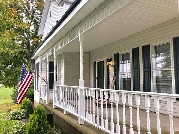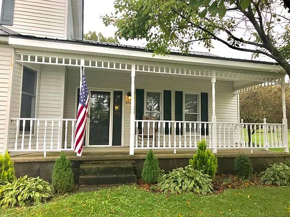 This spacious and modernized farmhouse will leave you feeling right at home. Generous room sizes, and comfortable layout featuring first floor bedroom, bath, and laundry! Move in ready, completely updated and efficient: furnace, air conditioning, stylish metal roof, spray foam insulation, and newer windows. This home has great storage, lots of closets, a full dry basement, and large detached garage. Beautiful pathways with wooded views, listen to the stream babble and breathe in the fresh air!