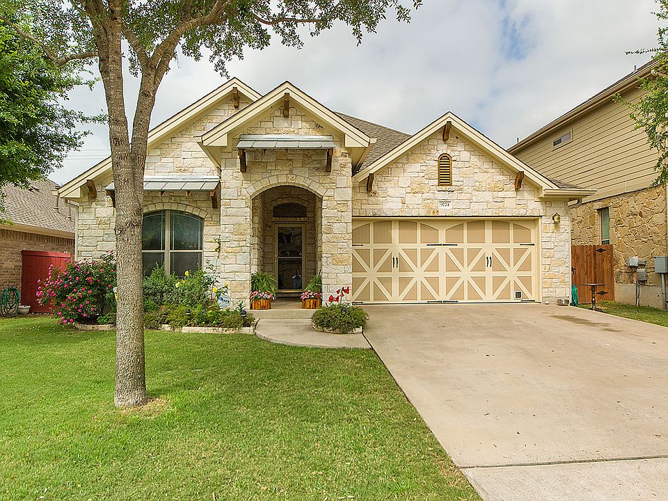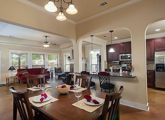 4 Star energy rated 1 story beauty with 2000+sq ft. Stained concrete throughout, no carpet! Rich maple cabinets, granite counters, SS appliances, island. Xtra area for study/play area. In-law plan, large master suite, garden tub, separate shower. office/homework nook. Tons of built-in storage all closets & garage! Lots of design features: arches, niches, crown/6" chair molding, high ceilings. Covered patio/fans. Raised beds, part xeriscape/low maintenance yard! Close to shops/eateries/entertainment!