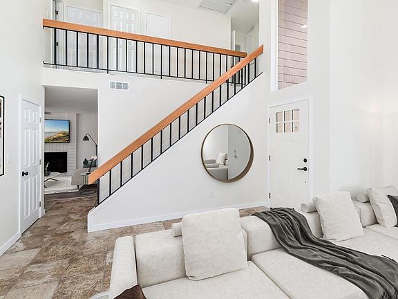 Exceptional Value – Don’t Miss Out! Now's the perfect time to secure this beautifully remodeled home at a great value! Thoughtfully renovated and light-filled, this spacious home offers a perfect blend of style and functionality. Custom painting and luxury vinyl plank flooring throughout create a seamless, modern flow. Vaulted ceilings and large windows in the living area fill the space with natural light, creating an open, inviting atmosphere. The kitchen is both stylish and functional, featuring wood cabinets and granite countertops. Adjacent to the kitchen, the cozy family room with its charming fireplace provides a warm gathering space. Designed for multigenerational living, this home features a no-steps entry for ease of movement. The main floor includes a convenient bedroom and fully remodeled bathroom, ideal for guests or family members needing ground-level living. The primary suite upstairs is a true retreat, with vaulted ceilings, two spacious closets, and a completely remodeled resort-style bathroom offering a spa-like experience. A whole-house fan alongside AC provides energy-efficient cooling. The expansive 10,000+ sq. ft. lot offers endless possibilities. The fully fenced property features space for RV parking with gated access. Low-maintenance landscaping, including lush artificial grass in the front yard, allows you to spend more time enjoying your home and less time maintaining it. A large storage shed in the backyard adds extra convenience. This home is truly a rare find, combining modern updates, a large lot, and no HOA fees, making it perfectly suited for multigenerational living. Don’t miss the opportunity to make this stunning property yours! *Some property photos are virtually staged.