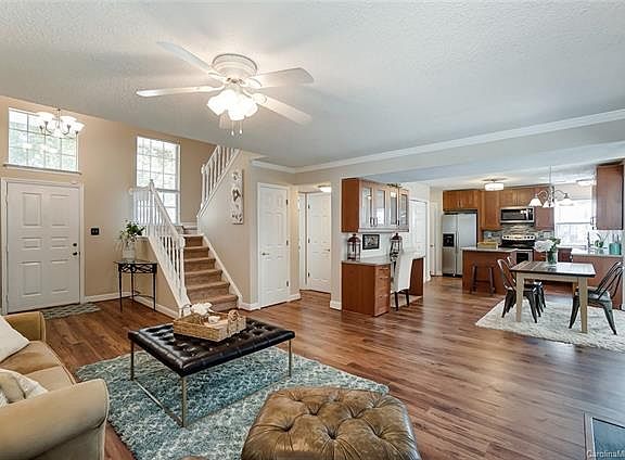 This beautifully updated home with open floor plan is just minutes to Independence Blvd with easy access to Uptown and I485!! Recent updates include new vinyl siding & vinyl windows 2019, water heater 2015. Kitchen updates include custom cabinets, granite countertops w/ tile backsplash, SS applicances and prefinished wood floors throughout main living area. Master bath features granite countertops, custom cabinets and large walk in closet. Entire interior of home recently painted in neutral colors. Fenced in backyard has large freshly painted deck perfect for entertaining! Roof replaced in 2013. Storage building in backyard remains.