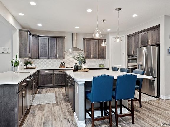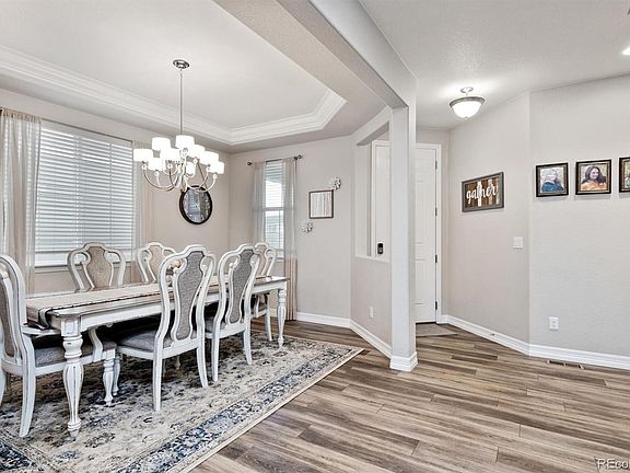 Gorgeous 2 story in highly sought out Sterling Ranch! Fantastic walk ability! Step into top of the line designer finishes! This home features all the bells and whistles you are looking for in your new home, plus it's a 1 Gig Technology Smart Home for locks, lights, etc! The main floor includes: Formal dining room with coffered ceilings and crown molding! A gourmet kitchen with gorgeous shaker style cabinetry, an extra large island with tons of seating, quartz countertops, GE Profile appliances, custom backsplash and a pantry! A bonus eat-in area/sunroom with space for all of your dining furnishings! The great room featuring the popular Western Sliders and a stunning fireplace that serves as your focal point!Main floor office or bedroom! Full size powder room conveniently situated! Walk up the upgraded staircase that leads to the bedroom quarters!Upstairs you will find a loft that can serve as a second family room or office area, 2 secondary bedrooms, a guest suite with a private bath and a full size hall bathroom! The large master retreat includes two closets, a walk in upgraded shower with a drying space and gorgeous finishes! This home has 8 foot doors, the premier trim package, 2 furnaces and 2 ACs, luxury vinyl flooring, custom paint and high quality design center finishes! Two and a half sized garage with shelving! A professionally low maintenance landscaped backyard with a gas fire pit and large covered patio! The unfinished basement is waiting for your finishing touches to increase your equity! If you are looking for a new home, this recently finished Richmond beauty is waiting for you! An entertainers dream! Sterling Ranch is a developing community conveniently located next to Chatfield State Park, ALL residents get an annual State Park Pass!Restaurants, food trucks, community events, rec center with a pool, clubhouse,bocce ball courts, a corn hole park, playgrounds and walking trails! Close to Lockheed and light rail system! This gem is ready for you!