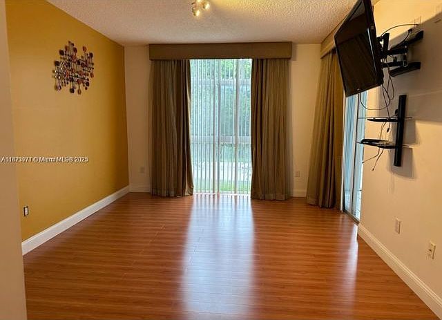 Amazing corner unit in the heart of Doral, close to shopping centers, banks, Citi of Doral, ClubHouse, with Pool, Jacuzzi, sauna, Gym, tennis court, pickleball court, schools, it has curtains, 3 bedrooms, 2 full bathrooms, all renovated, new kitchen, wood floor, Master has a TV with control and curtains, with walking closet plus additional closet. Second and third bedrooms have 1 TV with control, 6 stools, some pictures on the walls, Multiple closets, Washer and Dryer inside. Bathroom with Jacuzzi, screen balcony, 2 parking spaces, plenty of parking for visitors, NO PETS, price includes water, garbage, sewer and association duties. The tenant is membership of the Country Club of Doral, No pay membership. No commercial cars.)