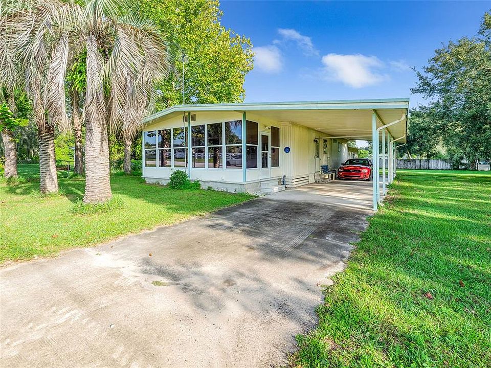 Location, Location, Location. Just across the street from The Villages, you will find this gem. A lovely, well maintained mobile home on over a half-acre of land. This home boasts a large FL room, attached work shop, massive over-sized detached block 2-car garage with its own entrance, and is on well & septic. The yard is maintained with luscious grass and two terrific trees that give you a great sense of old Florida feel while living just across the street from The Villages. Call today to schedule your very own private tour.