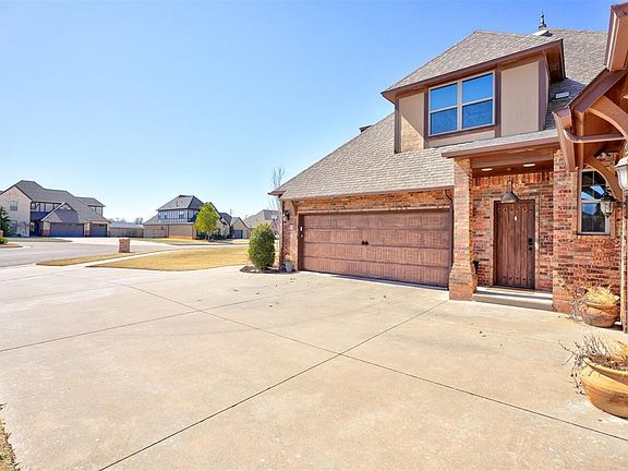 Wonderful Location close to I-40, Kilpatrick, and downtown. Beautiful 4 bedroom 3 bath in a lovely 19 home small cul-de-sac neighborhood in the Mustang School District. Entering you will be drawn to the grand 24 ft. ceilings in the living room with stunning wood beams. Beautiful wrought iron stair railing and stained woodwork. This home is designed by one of Oklahoma City's premier designers Brent Gibson and is built with luxury in mind. Features include soft close drawers in kitchen, double ovens, nice size pantry. Wired speakers in the living room and in the optional living area upstairs and to patios . Large backyard and spacious patio with grill and fireplace a wonderful place to enjoy time with your family and friends. Large laundry room with separate mudroom with a convenient service door for your guest. Third bay has a jumbo storm shelter and has pull through access, home is also plumbed and wired for a generator. (Main Garage is oversized, both have epoxy floors.) Come see this home today! Listing realtor is owner.