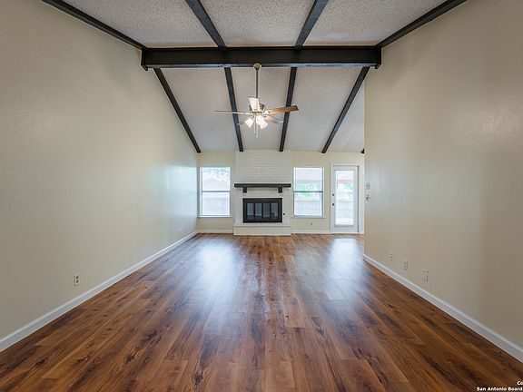 Tucked into a tree-lined neighborhood in Converse, this beautifully updated single-story home blends rustic charm with timeless Texas appeal. Step inside, and you're instantly welcomed by soaring vaulted ceilings and exposed wooden beams that bring warmth and character to both the living and dining areas. A classic gas brick fireplace anchors the living room with cozy charm. Brand new luxury vinyl plank flooring runs throughout the home, paired with fresh interior paint to create a clean, modern canvas that's ready for your personal touch. While the kitchen and living room are divided, the layout still maintains a comfortable sense of flow with the living room connecting to a casual dining area, and a second living or dining space just off the front entry, giving you the flexibility to make the home work for your lifestyle. Privately positioned on one side of the home, the primary bedroom offers a peaceful retreat, complete with those same vaulted ceilings and rustic beam details. The en-suite bath includes a shower-tub combo and space to relax. On the opposite side, you'll find two additional bedrooms and a second full bathroom - ideal for guests, a home office, or flexible living. Step outside, and the charm continues. The large backyard is shaded by mature trees and features a covered patio - perfect for weekend lounging, evening dinners, or quiet morning coffee. A full two-car garage provides plenty of room for parking or storage. And with no HOA, you'll enjoy the freedom to truly make this space your own. With nearby parks, shopping, dining, and entertainment - plus quick access to the city's major highways - this location keeps daily life easy and well-connected. If you're looking for a move-in-ready home that offers character, space, and flexibility - 9726 Cylburn Park is ready to welcome you.