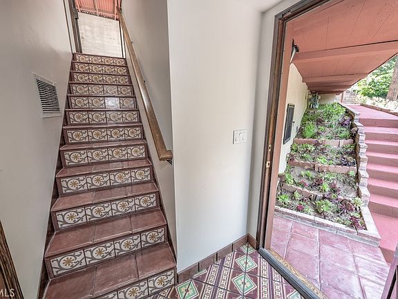 Neatly tucked away on quiet, woodsy street, Pinewood Ave is a Custom Built, Spanish Inspired, Hillside Home being offered for sale for the very first time! Stunning Curb Appeal, front of home beautifully landscaped with drought resistance succulents and plants, capturing the cool vibe of this unique home. Energy efficient Solar Panels installed and paid for! Eye catching vintage front door adds a touch of romance. A delightful arched window, red brick art trimmed, in the entrance leads to a colorful saltillo tiled stairway to living space. Natural light flows in from 3 double domed skylights. Freshly painted interior with new carpet in bedrooms and hallway. Rest peacefully in 2 comfortable sized bedrooms, with ample closet space. Assessor says 3 Br but Pinewood has always been a 2 Br. The Primary en-suite shower was tastefully updated with gorgeous custom tile surround, rainfall shower head, glass doors, new low flow commode, and tile flooring. Double sinks in cabinet are always a desired feature. Full guest bath received a new sink, cabinet, low flow commode, light fixture and gleaming new tile around the bathtub. Living room/dining combo, with vaulted wood beam ceiling, has easy care oak colored laminate flooring. Arched doorway, louvered saloon doors, brick style wall art in kitchen and breakfast bar area add a playful touch. Breakfast bar counter was custom made of cherry wood. Kitchen features vaulted ceiling, red oak hardwood flooring, a pristine tile counter and back splash, an abundance of cabinet space, 2 lazy Susans, stainless Samsung dishwasher, Jenn Air range/oven, garbage disposal, double sinks with goose neck stainless steel faucet. The street to street terraced lot is ready to become a garden, vineyard, or orchard. Partially covered concrete slab patio has brick & tile trim, adding great space for outdoor entertaining. Sip a morning espresso, and listen as the birds cheerfully greet the new day. Stroll the winding streets, or explore the many hiking trails area has to offer. The HVAC was serviced, roof and rain gutters cleaned, windows/screens professionally washed. The rear yard is fully fenced, sprinklers in front and back. Just 20 minutes to Downtown LA, Pasadena, Burbank or Glendale. The Prestigious Angeles National Golf Club, designed by Jack Nicklaus is minutes away. Angeles National Forest is a biking, jogging and hikers dream. Do not miss this opportunity! Pinewood is ready for its next chapter, will you be its Author?