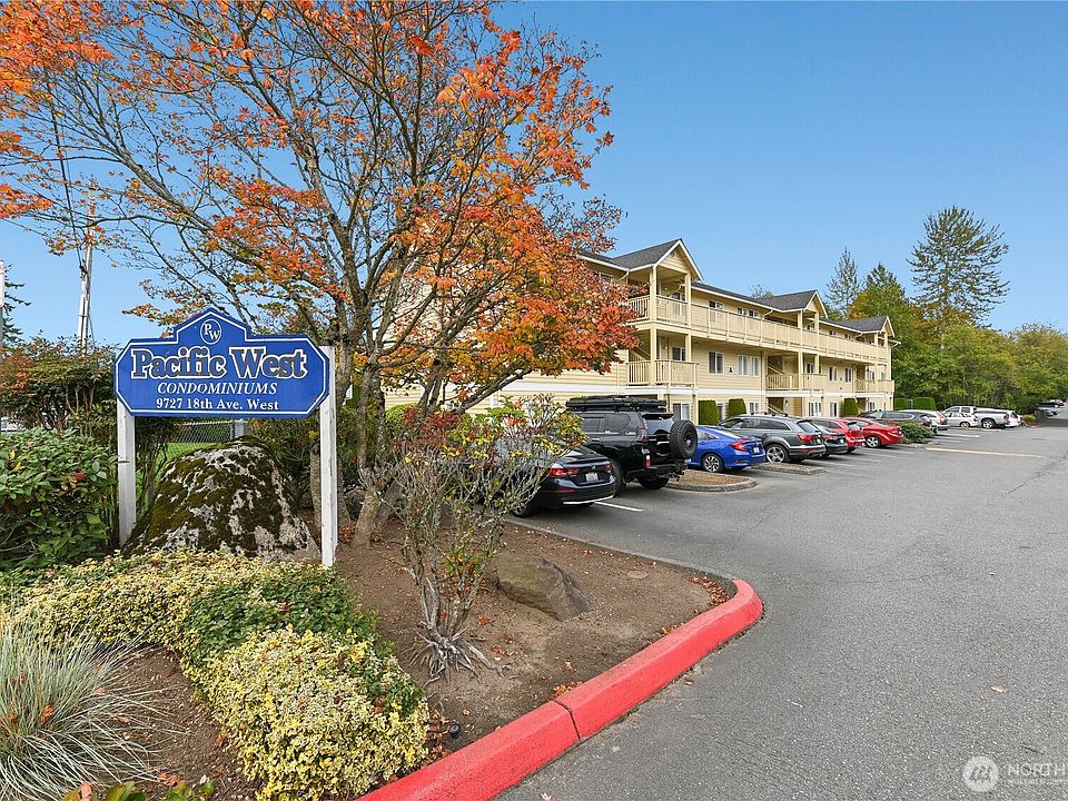 Great location just minutes from Paine field, Boeing, parks and restaurants. 2 bedrooms and 2 Full baths. This end unit features an open floor plan, lots of natural light, a private deck and lots of storage. Well managed HOA with low dues includes water, sewer, garbage and exterior/common area maintenance. Athletic court and fenced in dog park. 1 garage space and 1 reserved parking, plenty of visitor parking. Fantastic Mukilteo School District.