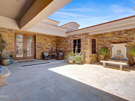 Elegant remodeled santa barbara inspired home by Bob Bacon with expansive Pinnacle Peak and golf course views in Estancia * Open, Great Room floor plan with soaring ceilings that frame massive Hope Steel windows to views * Large master suite with exercise studio and exceptional walk-in closet * Separate entrance guest house includes a living room with wet bar and bedroom with bath * Interior materials include Italian limestone flooring, Alder wood covered ceilings, Venetian plaster wall finishes and granite and quartzite slab counter surfaces * Exterior materials are a rich blend of stacked stone, formed concrete, slate, wood and steel * Outdoor living includes a heated pool and spa, covered dining patio, gas fireplace and outdoor kitchen * The over-sized 3-car garage is climate controlled * A rare opportunity for Estancia Golf Membership, buyer must complete all member requirements and subject to board approval.*