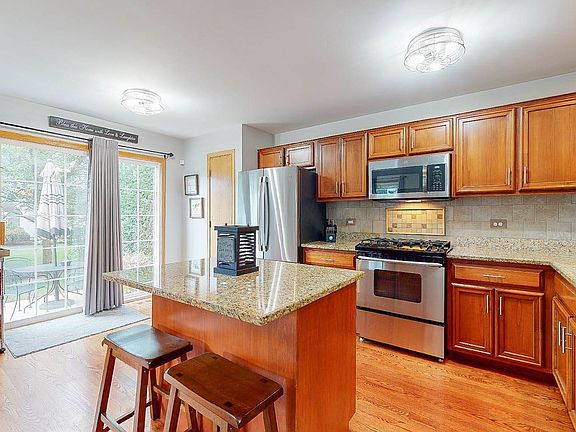 Meticulously cared for GORGEOUS END UNIT townhome in Mistee Ridge! 2 bedrooms plus a loft, 2 full baths, 2 half baths, and a full finished basement. A grand 2 story entrance with floor to ceiling windows lets in an abundance of natural light to show off the gleaming hardwood floors throughout the entire first floor. The kitchen is updated with granite countertops, all stainless steel appliances, an island with a breakfast bar, and plenty of quality cabinetry. The great room has a cozy fireplace as well as a 2 story sitting area. Upstairs the primary bedroom has a large walk-in closet and a private bath complete with a jetted tub, updated vanity, and separate shower. The loft provides extra space for an office or play room and has its own closet. The full finished basement has a bathroom and plenty of space for a rec room, family room, play room, or whatever you choose as well as plenty of storage space. New A/C, refrigerator, and microwave. Fresh neutral paint throughout and plenty of updates. Nothing to do but move in!