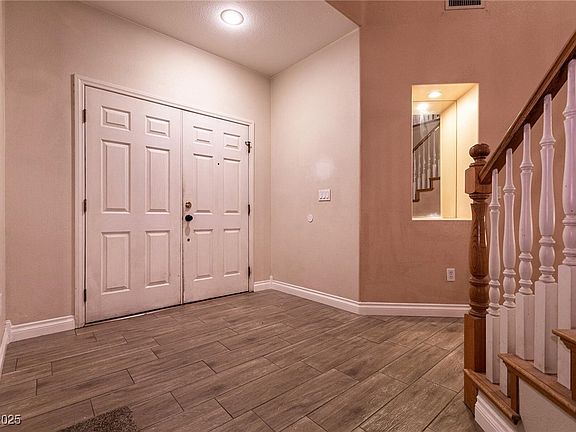 Step into this spacious two-story home that delivers room to breathe and room to entertain. The backyard is a true retreat—featuring a sparkling pool, elevated spa, natural grass, and mature fruit trees that add charm and privacy rarely found in this area. Energy-efficient solar keeps your power bills impressively low year-round. Inside, you’ll find generous living spaces, a versatile downstairs bedroom, and a kitchen designed for hosting. With no HOA and a 3-car garage, this property offers freedom and flexibility that’s increasingly hard to find in Las Vegas. Minutes from parks, shopping, and the 215, this home blends convenience with a private, resort-style outdoor experience. A must-see for buyers looking for space, value, and the perfect outdoor lifestyle.