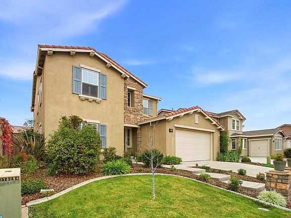 Don't miss this gorgeous 4 bedroom, 3 1/2 bath home, with one full bed & bath downstairs. Featuring upgraded tile flooring, neutral paint & carpet, & classic plantation shutters throughout, this home is light, bright, & perfectly inviting. The gourmet kitchen offers granite counters, a stylish tile backsplash, abundant cabinetry, & plenty of natural light. The spacious great room just off the kitchen creates the ideal space for family living & effortless entertaining. Upstairs you'll find generously sized bedrooms, with plenty of room to grow. The backyard is nicely landscaped with upgraded turf, a covered patio for year-round enjoyment, & your very own lemon & orange trees. Spacious 3 car tandem garage! Located close to shopping, top-rated schools, & all the neighborhood amenities you need,this home checks every box...A perfect place to call home, just in time for the holidays! Call your favorite Realtor today!