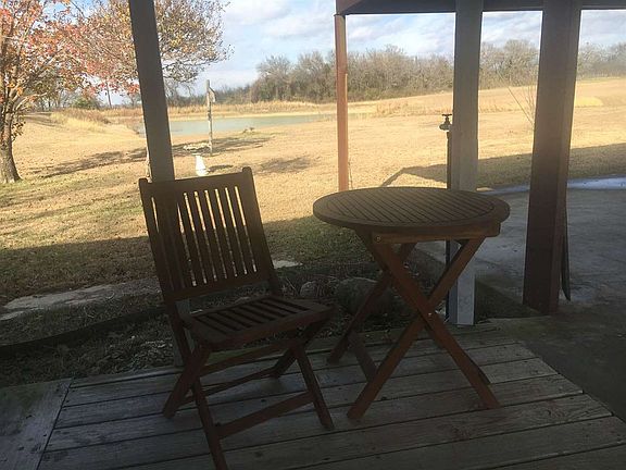 Picturesque ~10 acres in Axtell with pond about 15 minutes from i35 & 340. Tiny Home with metal roof, newer kitchen, Cafe Stainelss appliances, tankless water heater and newer HVAC. Vaulted Ceiling in Great Room area. Covered patio with view of pond. Surrounded by mature trees. Front acreage is cleared and maintained. Back acreage is wooded. Propane Tank, Outbuilding and RV cover.