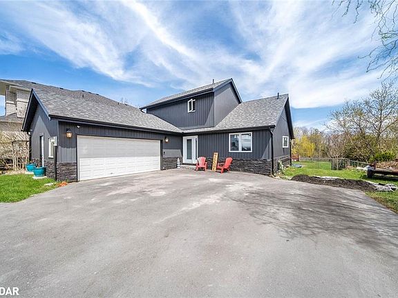 Welcome to this beautifully renovated home tucked away on a quiet cul-de-sac in the heart of Lefroy. Just 15 minutes to Highway 400, within walking distance to the lake, close to public and Catholic schools, and surrounded by scenic walking trails, this property perfectly combines convenience with tranquility. Set on a generous lot with no rear neighbours, the private backyard features a pool, ideal for summer entertaining or quiet relaxation. A newly paved driveway (2023) with parking for up to 10 vehicles leads to a heated, attached two-car garage. Inside, an open-concept layout with vaulted ceilings and abundant natural light creates a warm, inviting atmosphere. The main floor offers 2 bedrooms and a full bathroom, while the loft-style primary bedroom includes its own ensuite. The fully finished basement expands the living space with 2 additional bedrooms and a large rec room, perfect for a home office, gym, guests, or a growing family. Updates include roof, siding, flooring, gutters, and eavestroughs (2021), making this home truly move-in ready. Motivated sellers make this an excellent opportunity to secure a move-in-ready home in one of Lefroy's most desirable areas.