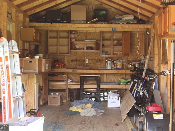 Stunning rock fireplacePartially fenced yardDetached workshopLong-range mountain viewsRaised bed gardensSerene creek frontageCathedral ceilings