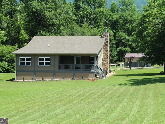 Exquisite 3 bed, 3 bath creekfront home in Hayesville, NC. Featuring approximately 200 feet of serene creek frontage in the heart of Western NC mountains. This single-level home features cathedral ceilings, granite countertops, tile showers, luxury vinyl floors, and a stunning rock fireplace, blending elegance with cozy charm. The open living room/kitchen concept, huge pantry, and dedicated media room offer modern comfort and versatility. Enjoy long-range mountain views. The partially fenced yard is perfect for pets. Raised bed gardens and a detached workshop. Nestled in a quiet community near Lake Chatuge to enjoy water activities. Nearby creeks, rivers, and National Forest Service lands ideal for fishing, rafting, canoeing, making this a perfect retreat for nature lovers.