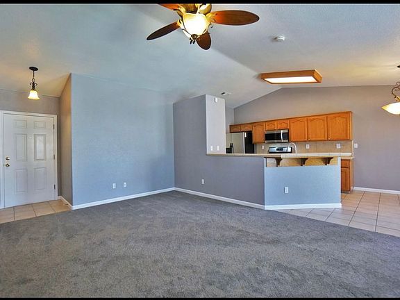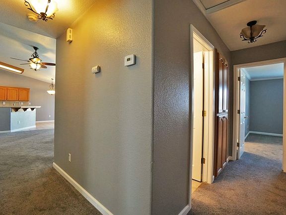 Step into this 1,487 sq ft home with 3 beds, 2 baths and a bonus room (Possible 4th Bed) on a 7,587 sq ft lot. In North East Lemoore, Ca. In the highest rated local school district, with newer carpet & paint, new appliances, open floorplan, and fireplace. The kitchen has a breakfast bar, gas stove, microwave, refrigerator and pantry. The breakfast nook has tiled floors and flows from the den to the kitchen. Down the hallway are all 3 bedrooms, a laundry closet, hall bath and storage closet. The main bedroom has an ensuite bathroom with separate toilet room, tiled counters and tub/shower. In the garage you will find a bank of storage cabinets with work bench.