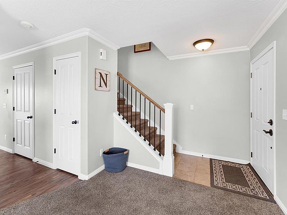 Talk about curb appeal! This was the former show model home with granite countertops, LVP and lots of extra upgrades. It is an end unit with mature trees, flowers a spacious lawn and tons of sunlight. Gorgeous deck off the back of the home for entertaining and watching the sunset. 2 car garage that connects directly to the finished basement family room, providing a basement entrance. The garage is sheetrocked and painted. Enter to a formal living room with a great room and kitchen next and an ample dining space. Deck off the dining makes for easy access to the grill and fresh air. Half bath on main floor for convenience and guests. Upstairs has 3 bedrooms and 2 bathrooms. The master bedroom is vaulted with an ensuite bathroom and walk-in closet. Laundry is also easy access on this floor. The HOA is loaded with amenities! Club House, swimming pool, spa and gym. The HOA also covers all landscaping, snow removal and water! This home also has high-speed Google Fiber Internet! Seller wants to help you get into this great home! They will gift you $5,000 towards your closing costs or buydown with an acceptable offer. They are also including all kitchen appliances, fridge, washer and dryer. That is a huge savings to you! Close to everything! Schedule your private showing today!