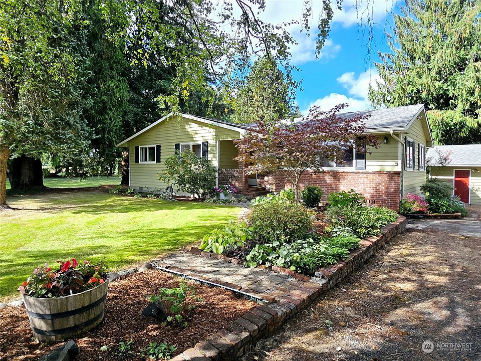 Escape to the countryside to this delightful single-level home, with a long list of updates for modern comfort. The welcoming interior features gorgeous hardwood floors and a warm color palette throughout. With two separate living areas, and primary bedroom offers an en-suite bath for added privacy. The kitchen shines with stainless steel appliances and a stunning tile backsplash. The family room is complete with a wood stove, entertainment unit, surround sound, and flat-screen TV, that will be perfect for movie nights. Outdoors, relax on the large deck, enjoy the landscaping, yard, garden area and producing apple tree. A detached 2+ car garage with workshop area for parking, and the garden shed or small barn complete this peaceful retreat.