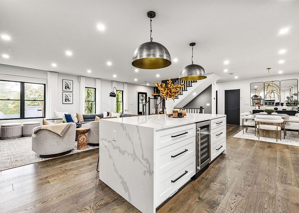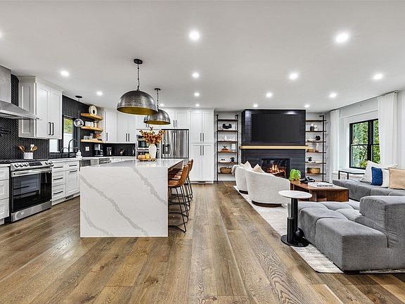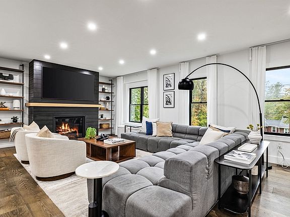 Newly Constructed home in 2022! This home is the Style of today w/the open floor plan & 9 foot ceilings. Charming front Porch gives it the New Englanders charm. The Family Room W/Gas Fireplace is all open to the Kitchen w/Gas cooking, Custom White Cabinetry, Water Fall Quartz Island w/top of line SS appliances & pantry is all open the Dining Room, the ideal home for entertaining!! The separate mudroom w/half bath & custom built-ins has access out to the stunning fenced in yard w/Patio, in ground pool & Fire pit. Tucked away1st Floor Office. Upstairs consists of Laundry RM, 3 bedroom w/Jack & Jill Bathroom & double Quartz sinks. Master bedroom suite w/cathedral ceilings & Romeo &Juliet balcony, oversized walk-in closet w/built-ins, Master bedroom Bathroom features Double Quartz Sinks, soaking tub& oversized shower! Lower level is an ideal Nanny suite w/a full bathroom & Family Room, w/french doors out to the yard. Two car Garage Min to Major RTES, Wholefood, Starbucks, Fine Dining,&More