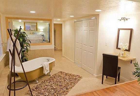 Private side yardPatio areaBig walk in showerClaw-foot tubNewer convection gas rangeShared laundry room