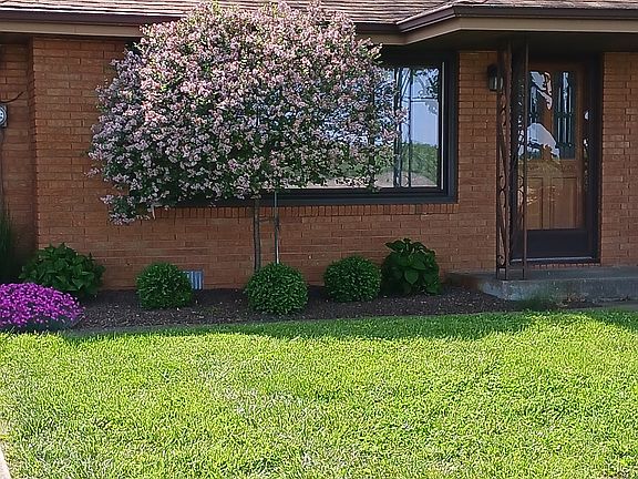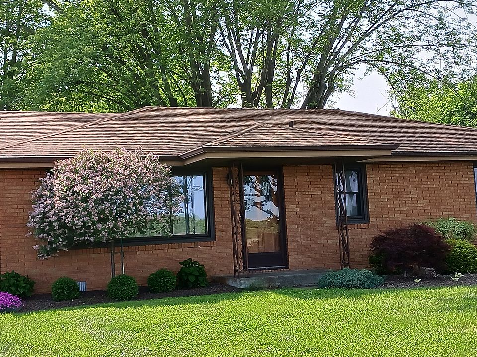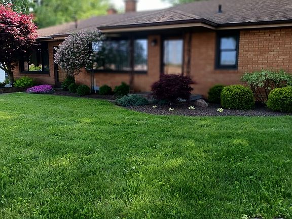 Very nice 2 bedroom brick ranch on almost an acre. Newer roof, gutters and gutter guards. Bath has been updated and is handicap accessible. Large living room and family room with fireplace. Hardwood flooring under carpet in the living room. Huge primary bedroom. Kitchen updated with all appliances. GFA & C/A extra large garage 2 car with storage in loft area. Lots of room for parking.