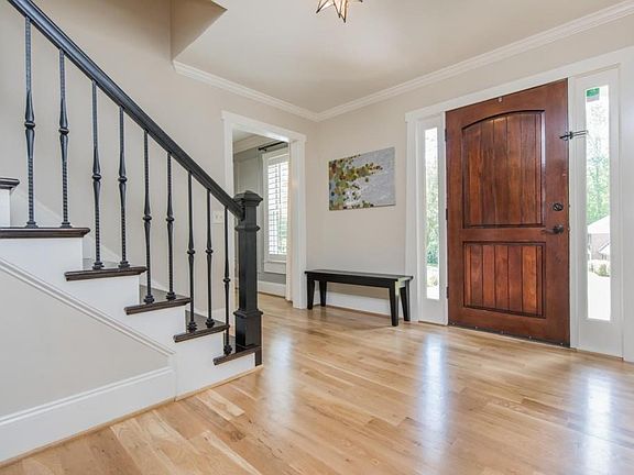 - Interior: Entrance Foyer, Wall/Wall Carpet, Bookcases, Disp Attic Stairs, His & Her Closets, 10 ft + Ceil Lower