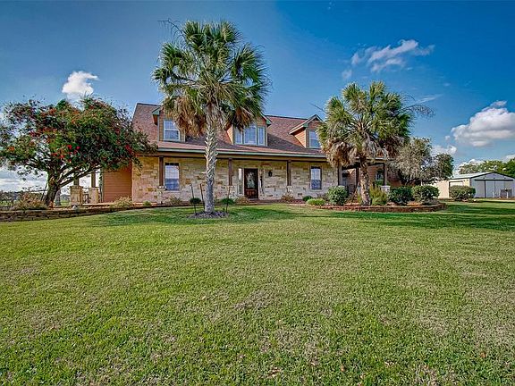 Beautiful country estate!! Large country home on 10+ acres ready for your horses or livestock. Backyard is an oasis with the pool and hot tub, and even includes a koi pond. Shaded by mature palm trees, the backyard is ready for outdoor entertaining, or just relaxing after a long day at the office. 50' x 100' Barn is set up for show animals or horses including stalls and tack/feed room. Can be easily removed for additional storage. Large pond is fully stocked! Worried about hurricanes, seek refuge in the storm shelter!