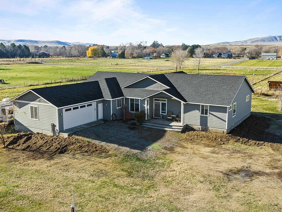 MLS# 289155 Welcome to your 5-acre country haven, perfectly set up for livestock and offering plenty of space to add a shop. This beautiful one level home features a thoughtful split-bedroom design with 3 bedrooms, an office, and a main level bonus room.Enjoy sweeping views of Rattlesnake Mountain and stunning sunsets from the large covered deck. Inside, you’ll find a spacious open great room with laminate flooring throughout, a cozy gas fireplace, and a generous walk-in pantry off the kitchen.The primary suite is a true retreat, complete with a tiled walk-in shower, separate soaking tub, dual sinks, and a large walk-in closet. The two additional bedrooms each include walk-in closets and share a convenient Jack-and-Jill bathroom. A laundry room with utility sink sits just off the extra large garage, perfect for trucks or additional storage needs.Located in a quiet, private area, just 20 minutes to the Hanford site and close to the Tapteal Trail for endless outdoor recreation. Home is built above the 100-year flood level for added peace of mind.A great opportunity to enjoy country living, wide open space all on one incredible property.