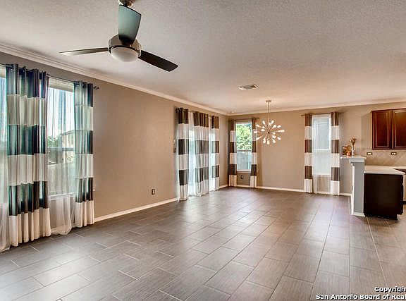Gorgeous kitchen with beautiful dark cabinets and over sized uppers, stainless steel appliances and light fixtures, as well as shiny quartz countertops. Modern interior with lovely tile flooring downstairs. Upstairs has a game room that comes completely prewired for surround sound. Even the back porch is wired for speakers too! This house will bring you lots of enjoyment and memories!