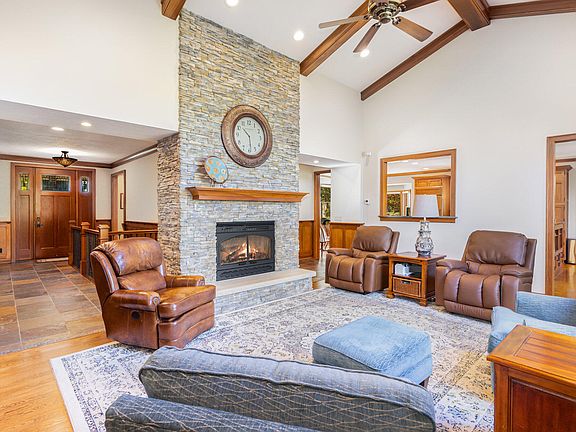 This unique high-end custom home showcases exceptional craftsmanship w/ rich hardwood floors, detailed trim, solid craftsman doors, decorative wainscoting, & coffered ceilings. The built-in shelving & library highlight the artistry throughout. The main-level office offers flexibility for use as an additional bedroom. The expansive chef's kitchen offers Sub-Zero & Wolf appliances, solid wood cabinetry, granite counters, & decorative tile backsplash. The walkout basement is designed as a full living space for entertaining. Enjoy beautiful views of your retreat, from the composite deck or patio which adds space for gatherings, relaxation & taking in the lush landscape. The outdoors of the property is designed for both function & leisure with a large custom play structure, stocked pond with four bubblers, fountain, and gazebo. Truly a one-of-a-kind property blending timeless style and modern amenities Supplemental Mechanical & Property Features