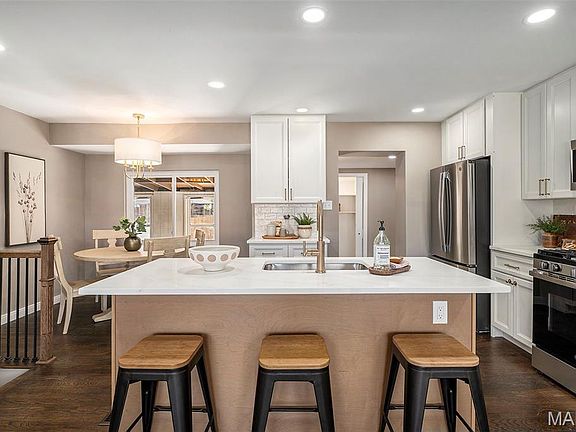 Welcome home to this beautifully updated 3-bedroom, 2-bath gem in the award-winning Lindbergh School District with inground pool! Boasting over 1,990 sq ft of living space, this home combines modern design, functionality, and comfort. Step inside to a spacious, light-filled living room featuring large picture windows and an open floor plan that flows seamlessly into the stunning kitchen. The chef’s kitchen showcases a 7-ft center island with quartz countertops, custom cabinetry, gold hardware, stainless steel appliances, and a walk-in pantry. The separate dining room overlooks the expansive 3-season room—perfect for entertaining, family gatherings, or enjoying views of the sparkling inground pool. The main level also offers laundry, an attached garage, and a versatile storage or bonus area. The fenced, level backyard is ideal for outdoor living with a pool changing room, storage space, and plenty of room to play or relax. This home offers large level green space & huge inground pool- best of both worlds! The finished walkout lower level features a cozy fireplace, spacious family room, game room/bonus area, and an updated full bath. Upstairs has spacious primary, updated bathroom with gorgeous tile work, & 2 additional bedrooms. Attached garage and double wide driveway! Major updates include a new roof, new kitchen, new electrical panel, new flooring, freshly painted interior, new doors, updated bathrooms, some newer windows, and more! Situated on a large lot with a spacious level backyard, this move-in-ready home truly has it all—style, comfort, and location. Don’t miss your chance to make this exceptional property your own!