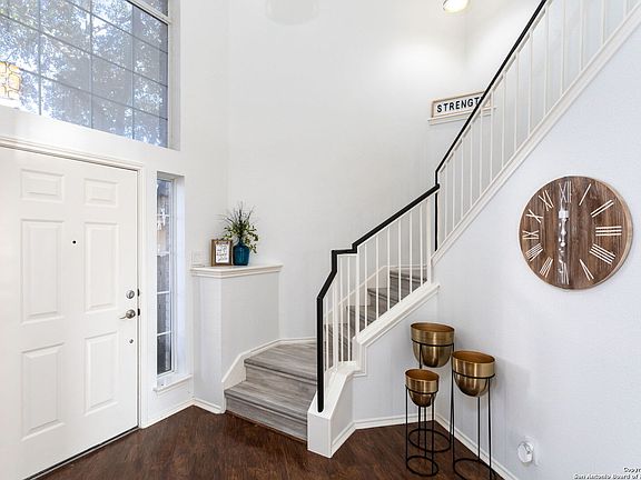Explore this captivating 3-bedroom, 2-bathroom residence, boasting over 2200 square feet of comfortable living space. Situated in a highly desired gated community in Helotes, this home offers both luxury and convenience at your doorstep. Step into a magnificent open floor plan featuring tall ceilings that enhance the spacious and airy ambiance throughout. The living area and master bedroom are equipped with a surround sound system, perfect for immersing yourself in your favorite media. The heart of this home, the kitchen, is a modern culinary paradise with sleek granite countertops, stainless steel appliances, and ample cabinet space. It's designed to cater to both the passionate cook and the family dining experience. Upstairs, you'll find all three bedrooms, offering a private and peaceful retreat from the main living areas. Large windows throughout bathe the home in natural light, highlighting its warm and welcoming atmosphere. This home is equipped with a water softener, ensuring comfort and convenience in your daily life. Located just 5 minutes from HEB and shopping centers, and with direct access to 1604 and Bandera Rd, you'll find everything you need close by.