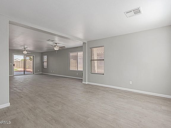 Welcome to New River Ranch, where this TASTEFULLY UPGRADED home awaits you! Providing 4 beds, 2 baths, and a 2-car garage. Discover an inviting interior featuring fresh neutral paint, tons of natural light, window blinds, ceiling fans in every room, and new wood-look flooring throughout. You'll love the separate living room, along with the perfectly flowing dining & family room! The renewed kitchen boasts SS appliances, solid-surface counters, ample white cabinetry, recessed & pendant lighting, a pantry, and a 2-tier peninsula w/breakfast bar. Enter the main bedroom to find a walk-in closet and an updated ensuite with dual quartz sinks.