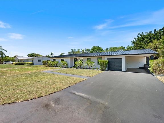 Step into this immaculately remodeled 3 bed 2.5 bath home with a 1 car garage and a carport on nearly half an acre lot, featuring a full 2025 complete transformation located in the highly desirable Falls neighborhood. Updates include a brand new 2025 metal roof, High impact windows, french entry door and sliders. A two tone quartz kitchen with matte black finish bespoke appliances, smart fridge and wall oven/microwave combo. A five-star primary bedroom with curveless fully tiled bath, contemporary soaking tub, shower combo and walk in closet. 24x48 matte porceliane tiles throughout the entire home, recess lighting throughout the interior and exterior and a modern accent wall with hidden flush door to the tempertature controlled garage. Pool concept photos included, book your viewing today!