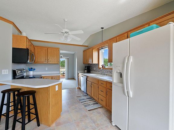 Wow! Sip your morning coffee on your oversized deck overlooking Pine Glen Park. Hop your fence to enjoy a brisk morning jog around the park! In the evening, enjoy nature at the DNR's nearby 237 acre river front Grey Cloud Dunes, or fish and kayak the Mississippi at the nearby Hazen P. Mooers Park. This bright and open floor plan features tons of natural light and vaulted ceilings. Kitchen upgrades include stainless steel appliances, custom backsplash, and more! Lower level office could be converted to a fourth bedroom if desired. Don't wait! This is the one!